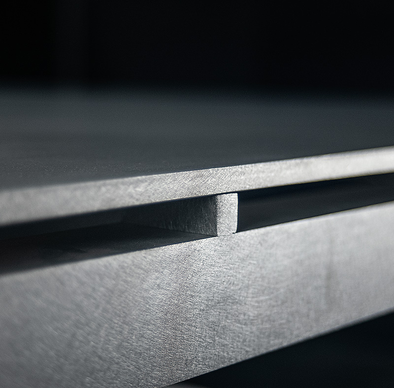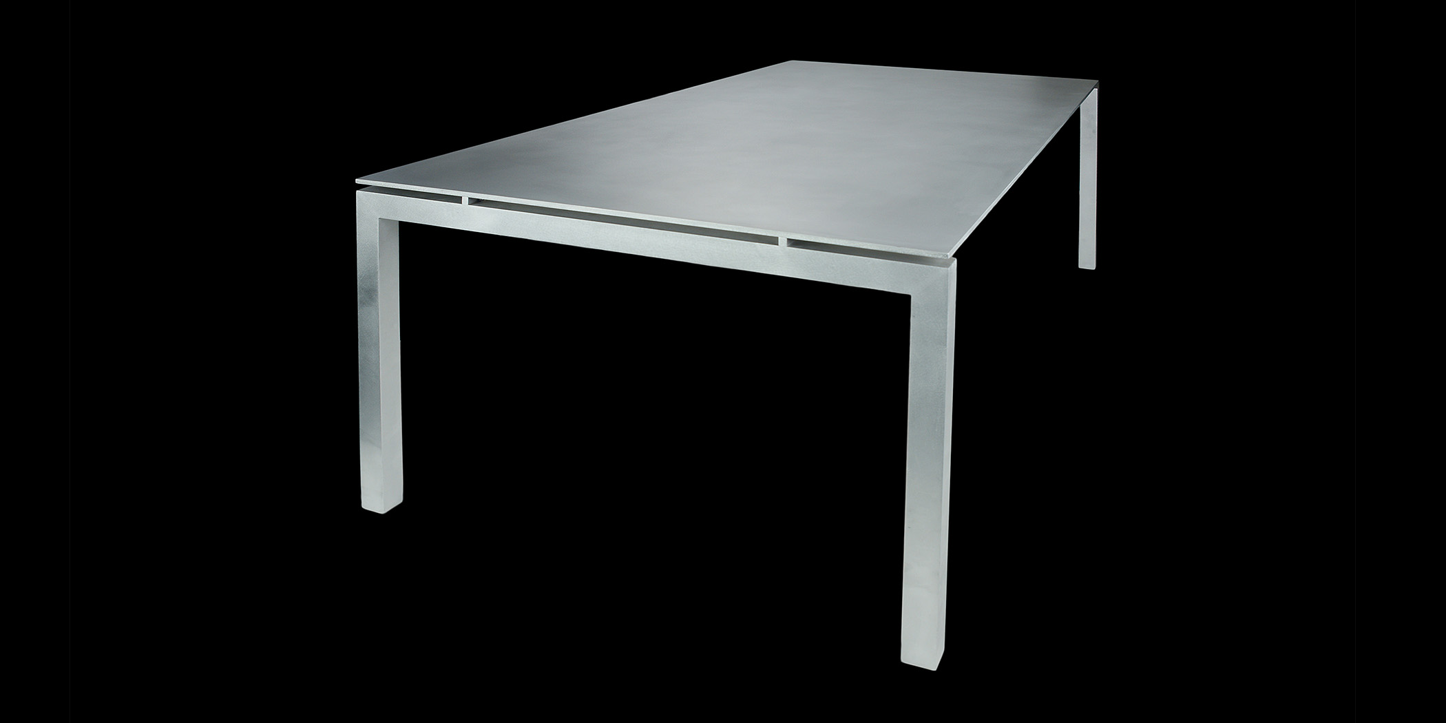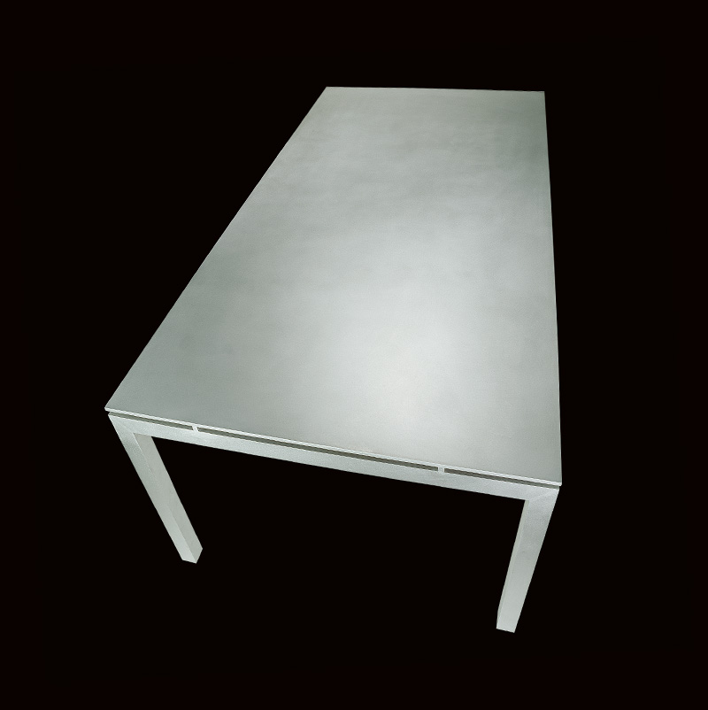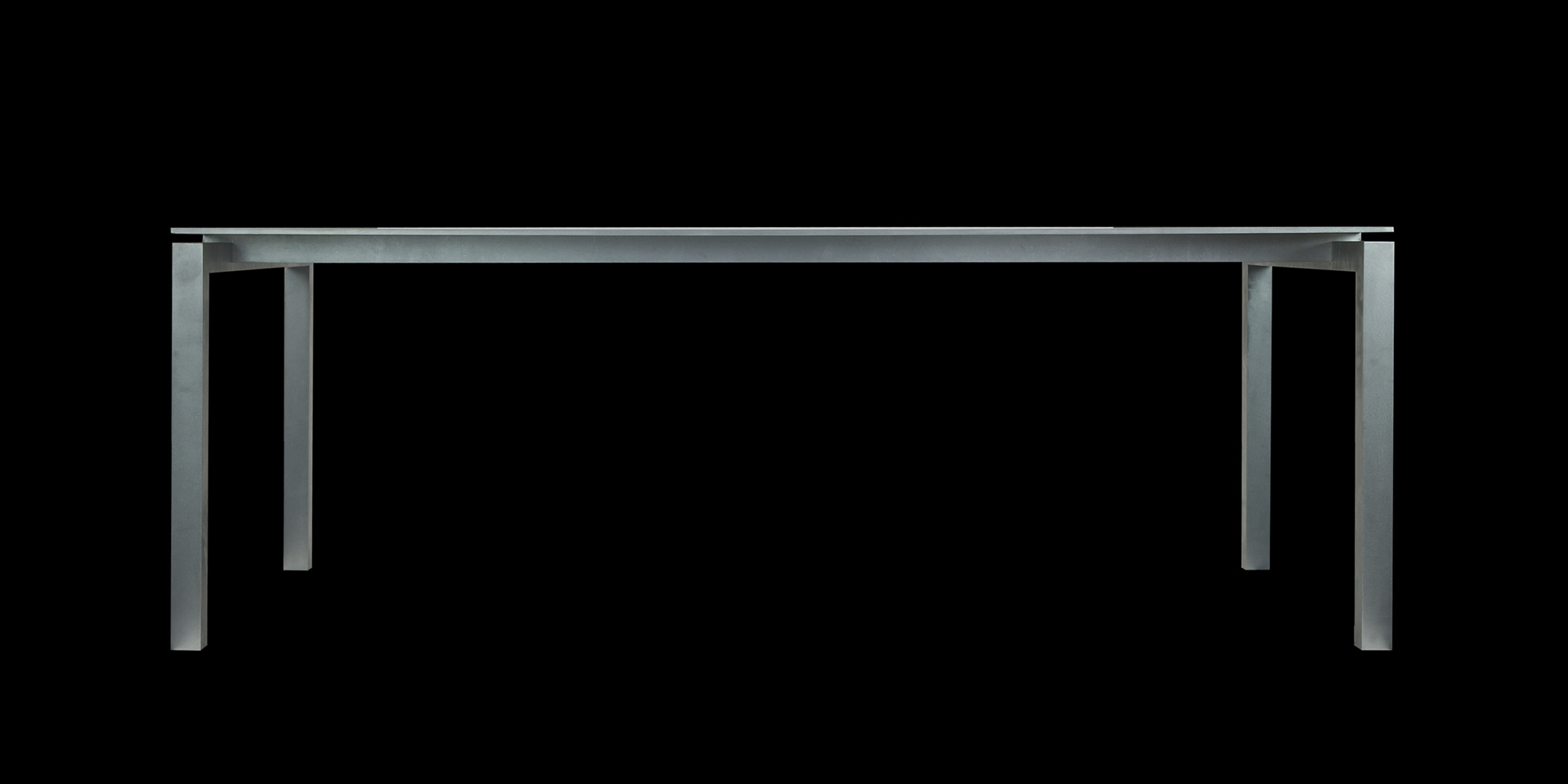 水谷光宏(KURU design)氏のデザインによるソリッドシリーズ第一弾。10mmアルミ無垢材使用の天板と溶接痕のない脚部はシャープな印象と素材のもつ重厚な手触りを併せ持つ仕上がりになっています。マットな仕上げのアルミテーブルトップは素材特有の柔らかさのために使用時の小傷が目立ち始めます、これを風合いと捉えることで無垢の素材をより実感してもらえるのではないか、という試みです。アルミの持つ無機的な清潔感は担保されつつ風合いは増していく独特な仕上がりだと考えています。DIYでの再研磨も可能な、無垢の素材を育てていく、デザイン思考を体感して頂ける製品です。
